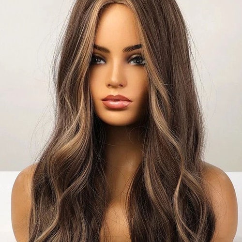 Long Brown Wig With Highlights Natural Heat Resistant Wigs For Etsy
